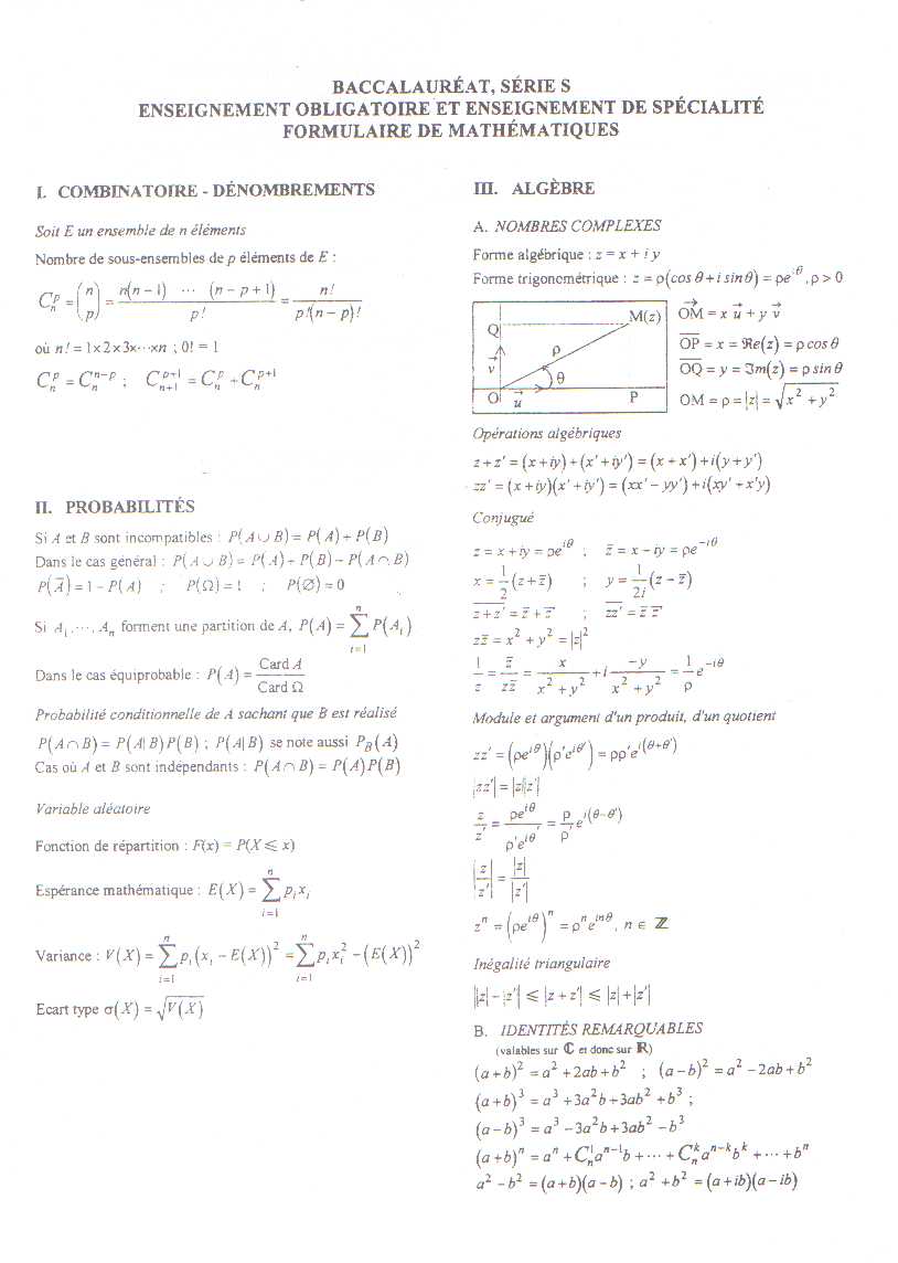 FORMULAIRE OFFICIEL MATHÉMATIQUES